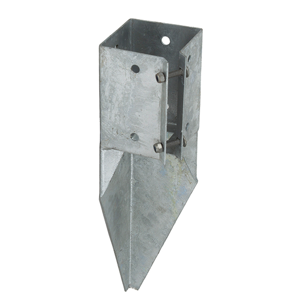 Ideal to use for repairing damaged fence posts which have broken off at ground level but are in a sound concrete base. - Designed to fit 100 x 100mm square wooden posts - Spike length: 300mm - Post Socket Length: 150mm - Bolt-Grip post securing system - Manufactured from 2mm thick steel - Welded construction - Galvanised finish for durability outdoors