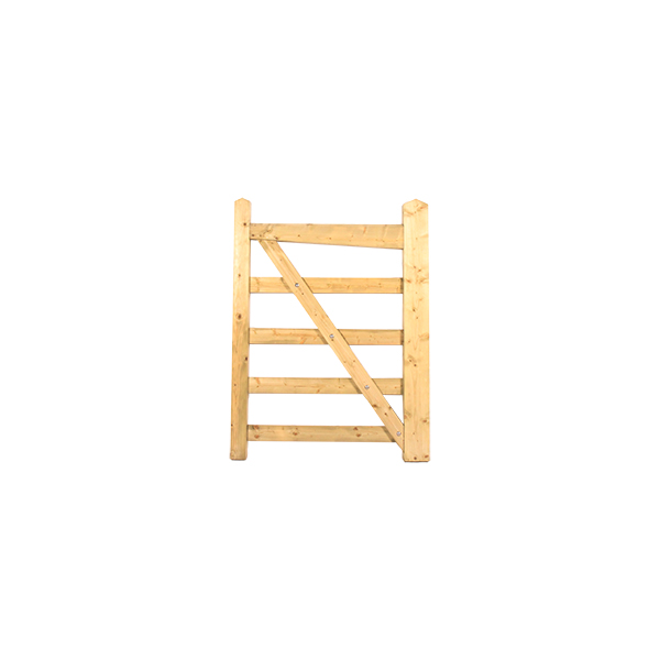 The 915mm (3’) Somerfield gate is a great value, traditional style of 5 bar wooden gate. It has a strong morticed and tenoned construction, a tapered top rail which is stronger and heavier at the hanging end, tapering down to a lighter swinging end. It is made with joinery grade treated softwood and has a planed finish. The Somerfield gate is equally at home in a field, a garden, or at the end of a driveway as part of a pair. - Width: 915mm (3’) - Height: 1093mm (to top of top rail) - Overall Height: 1220mm - Overall Thickness: 70mm - Right-handed: Fit the hinges on the right-hand side when viewing the gate from the front. Non-standard gate widths are available to order, please contact us for price and availability. It is recommended that Somerfield gates are fitted with: • 1x adjustable hinge set (per gate) • 1x drop bolt (per gate) • 1x gate catch (per gate) OR 1x throw over gate loop (per pair of gates)
