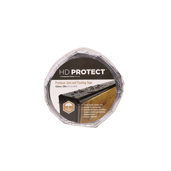 - This tape is black, giving a smart finish to joists that are visible between deck boards