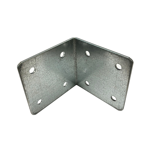 A large, heavy duty right angled fixing plate designed for joining sleepers but could have many uses. - 81mm x 85mm x 2.0mm (each side) - 8 x 8mm diameter fixing holes - Galvanised finish