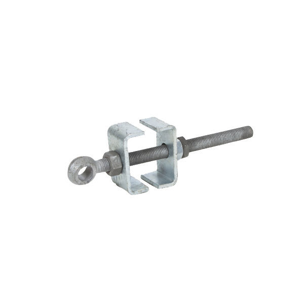 Galvanised adjustable bottom gate fitting for 3" (75mm) thick gate. The eye takes a 19mm pin.