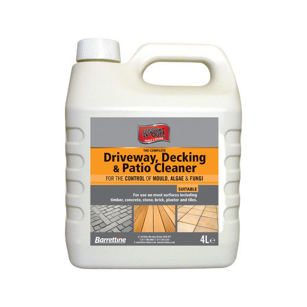 Knockout® Outdoor Driveway, Decking & Patio Cleaner is ideal for cleaning concrete driveways / pathways, block paving, patios and decking areas. Contains a surface biocide to kill unsightly Mould, Fungi and Algae from decking, patios and other hard surfaces whilst cleaning general dirt and grime from the surface. Ready to use. Contains <5% cationic and nonionic surfactants.