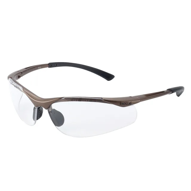 These Bollé Safety CONTOUR Safety Glasses have clear lenses. Approved for permanent wear and certified with perfect optical quality with anti-fog and anti-scratch coatings, 99.9% UVA/UVB protection.