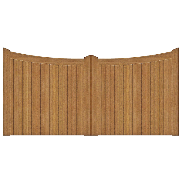 Available in Iroko (hardwood) & softwood, Cotswold Gates make an impressive entrance. Iroko is an African hardwood renowned for its durability & stability, the softwood is a slow grown Scandinavian kiln dried softwood. Both should be treated with wood preservative & a treatment of choice. Made to order using a strong, morticed & tenoned construction, Cotswold Gates are made to measure up to 9' (2.743m) wide & 8' (2.438m) high per gate. Please notify us if the gates are to be automated as they must be made with a heavy duty bottom rail. The stiles on the Cotswold Gate can be made rounded, pointed, sculptured or weathered. They can also be rebated so that the gates close against each other.