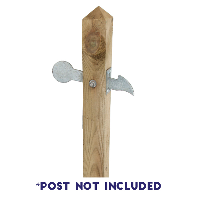 Gravity catch to fit a 75 x 75mm wooden post (*post not included). This galvanised gravity catch is designed to hold a wooden five bar gate in the open position. The catch works by retaining the bottom rail of the gate when it's pushed open, metal plates are included to protect the gate rail from damage through use. The weighted design allows the catch work automatically and is foot operated to release the gate.