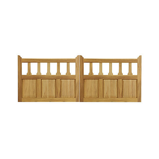 Available in Iroko (hardwood) & softwood, the Hilton Gate is a classic design. Iroko is an African hardwood renowned for its durability & stability, the softwood is a slow grown Scandinavian kiln dried softwood. Both should be treated with wood preservative & a treatment of choice. Made to order using a strong, morticed & tenoned construction, Hilton Gates are made to measure from 3' (0.915m) to 6' (1.83m) wide per gate & 3'6" (1.067m) to 8' (2.438m) high. Please notify us if the gates are to be automated as they must be made with a heavy duty bottom rail. The stiles on the Hilton Gate can be made rounded, pointed, sculptured or weathered. They can also be rebated so that the gates close against each other.