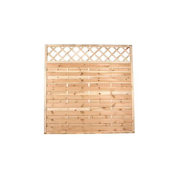 The Wells fence panel is a good quality, well-made, decorative fence panel. It looks the same from both sides; perfect for shared boundaries. These panels are constructed with ‘hit & miss’ slats that allow wind to pass through. This panel has a smooth machined finish and is pressure treated green. Height Including Trellis: 1800mm (approx. 6') Width: 1800mm Depth: 45mm Please note this panel is 1800mm wide, not 1829mm (6’), you can increase the panel width to 1829mm by attaching panel packing strips, sold separately.
